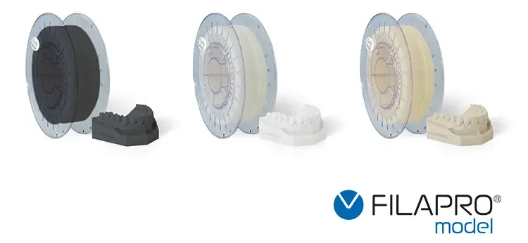 Das neue FILAPRO® Filament-Drucksystem inklusive Slicersoftware und der drei Filamentvarianten Model gray, white und cream wird auf der IDS 2025 vorgestellt.