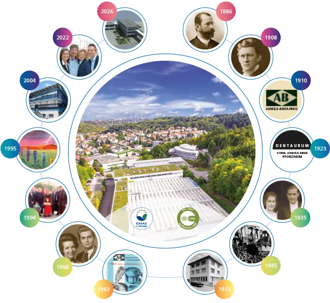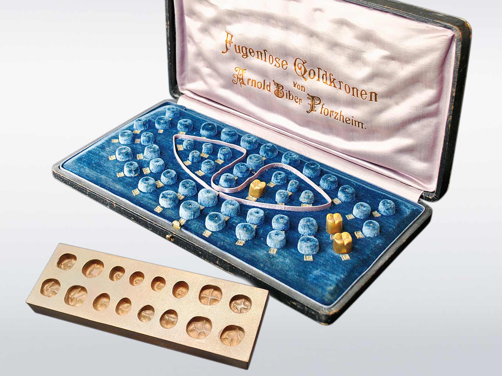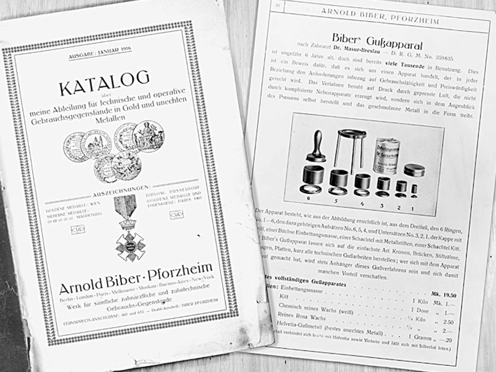 1886 Der Schweizer Arnold Biber gründete in Pforzheim ein zahntechnisches Labor, in dem er zahntechnische Arbeiten fertigte. Mit großer Leidenschaft widmete er sich der Entwicklung innovativer Dentalwerkstoffe und setzte sein Können auch als praktizierender Dentist ein.