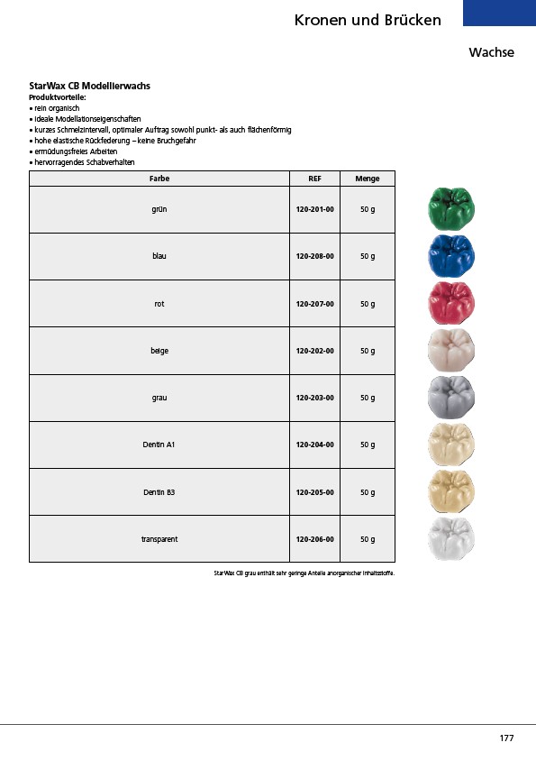 StarWax CB grau enthält sehr geringe Anteile anorganischer Inhaltsstoffe.