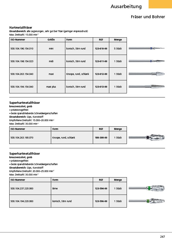 Einsatzbereich: alle Legierungen, sehr gut bei Titan (geringer Anpressdruck)