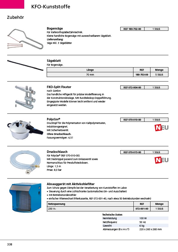 • einfacher Filterwechsel (Filterkassette, REF 072-001-40, nach etwa 50 Betriebsstunden wechseln)