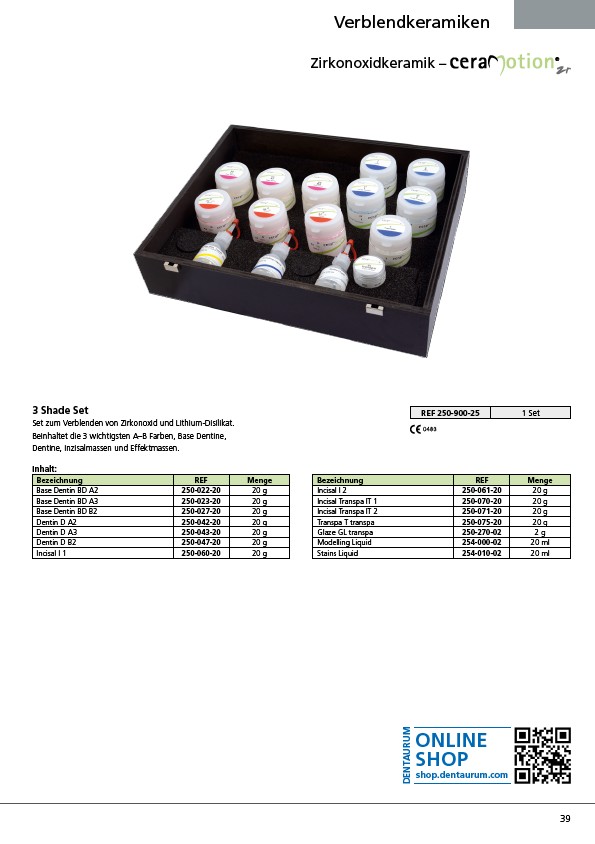 Base Dentin BD A3 250-023-20 20 g Incisal Transpa IT 1 250-070-20 20 g