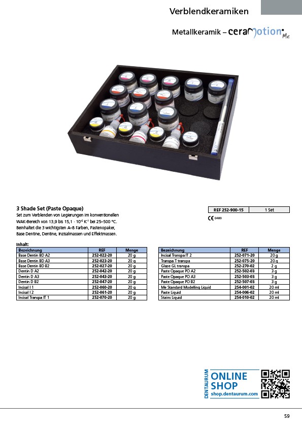 Base Dentin BD B2 252-027-20 20 g Glaze GL transpa 252-270-02 2 g