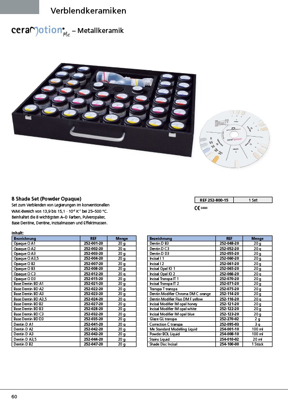 Base Dentin BD D3 252-035-20 20 g Glaze GL transpa 252-270-02 2 g