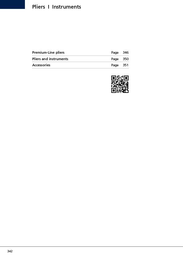 342 Pliers I Instruments Premium-Line pliers Page 346 Pliers and instruments Page 350 Accessories Page 351