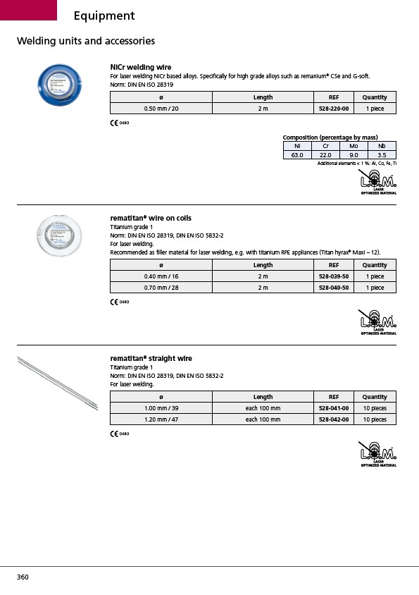 For laser welding NiCr based alloys. Specifically for high grade alloys such as remanium® CSe and G-soft.