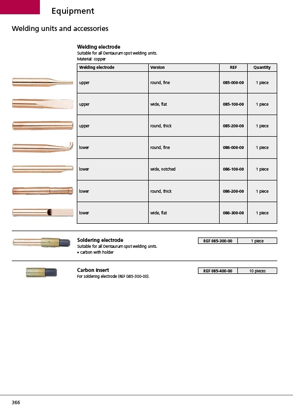 Suitable for all Dentaurum spot welding units.