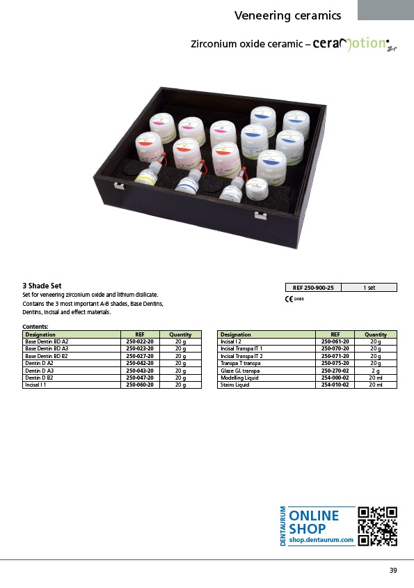 Dentin D A3 250-043-20 20 g Glaze GL transpa 250-270-02 2 g