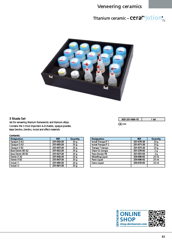 Base Dentin BD A2 251-022-20 20 g Glaze GL transpa 251-270-02 2 g