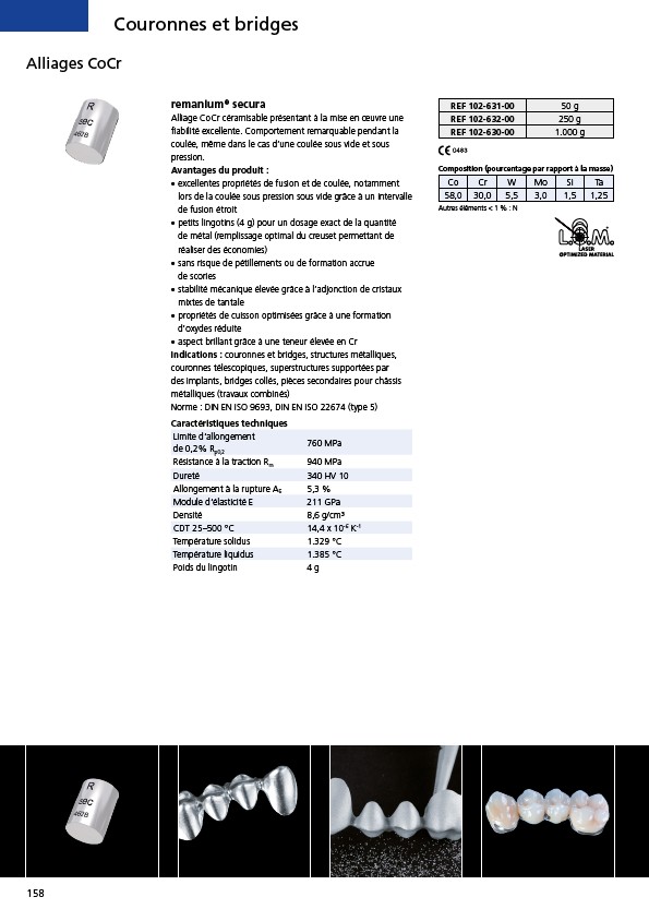 Norme : DIN EN ISO 9693, DIN EN ISO 22674 (type 5)