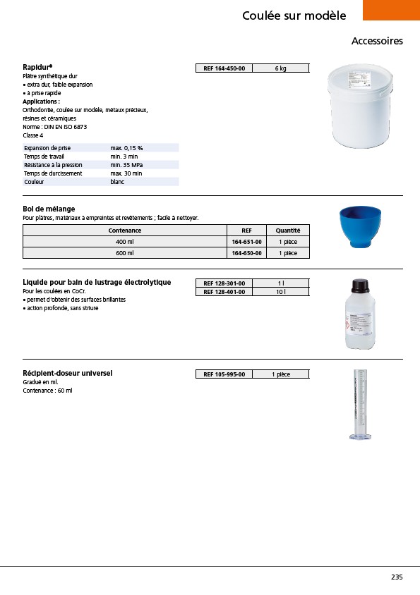 Pour plâtres, matériaux à empreintes et revêtements ; facile à nettoyer.