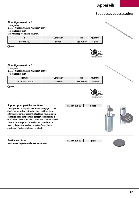 du réticule sur les lasers dentaires. Une pastille en titane