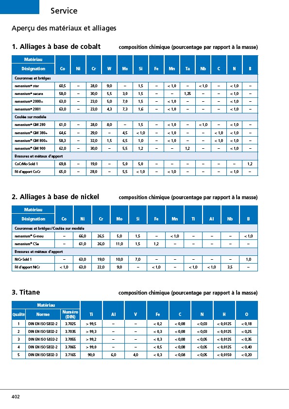 1. Alliages à base de cobalt composition chimique (pourcentage par rapport à la masse)