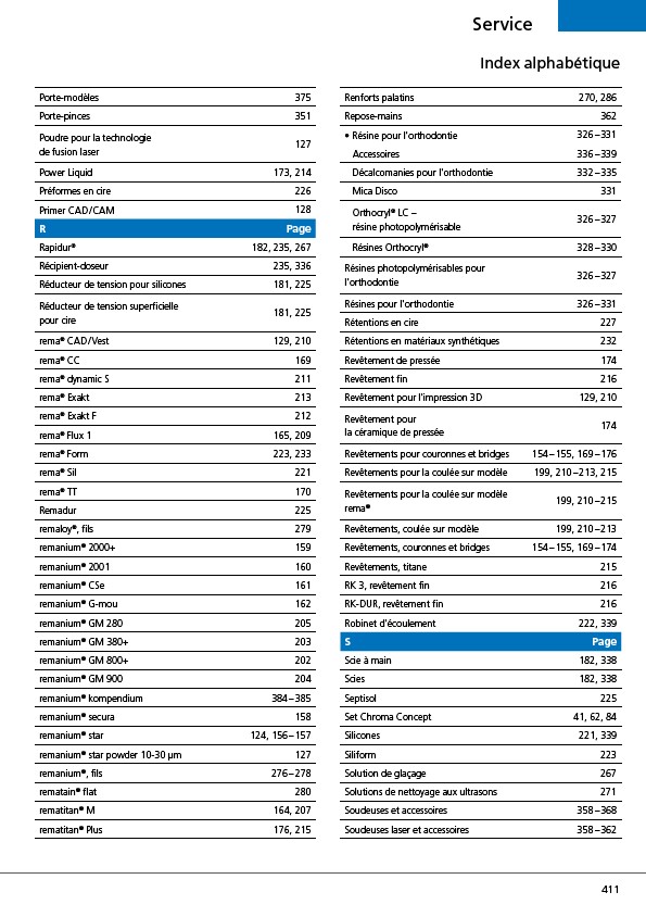 • Résine pour l'orthodontie 326 – 331