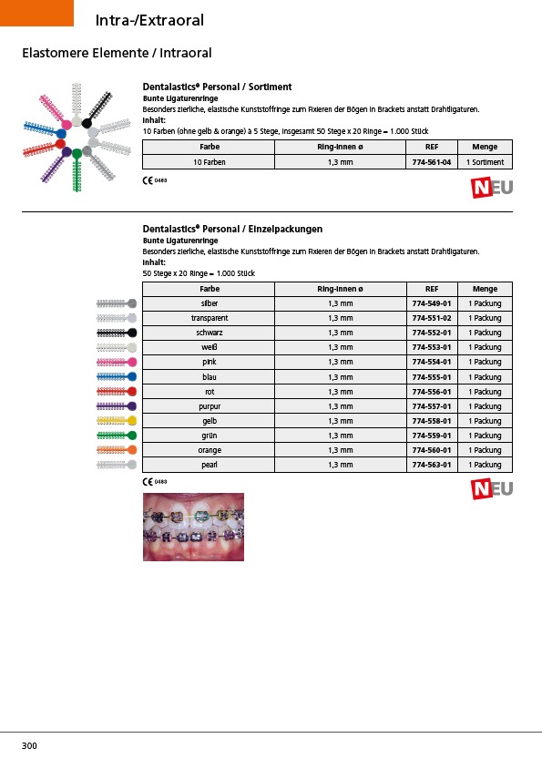 Besonders zierliche, elastische Kunststoffringe zum Fixieren der Bögen in Brackets anstatt Drahtligaturen.