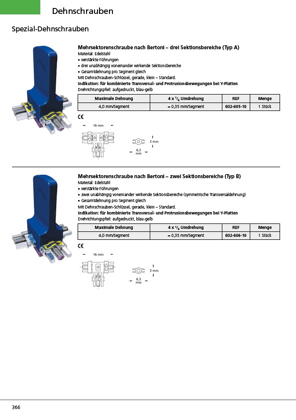 Mehrsektorenschraube nach Bertoni – drei Sektionsbereiche (Typ A)