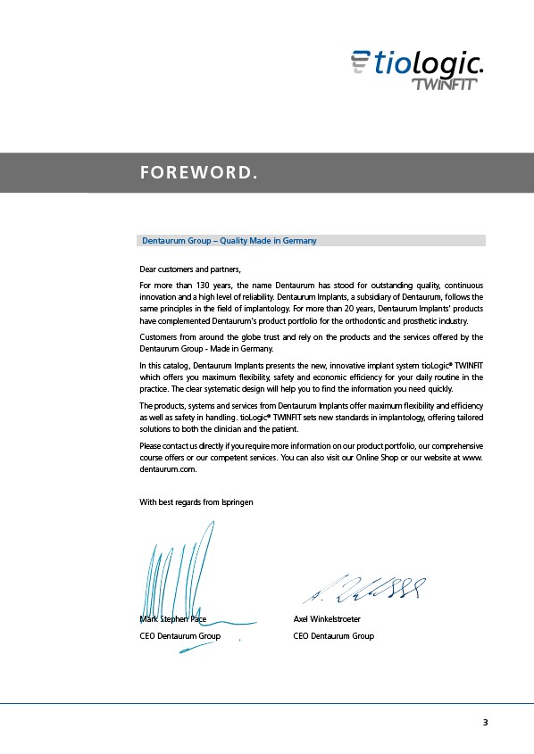 In this catalog, Dentaurum Implants presents the new, innovative implant system tioLogic® TWINFIT