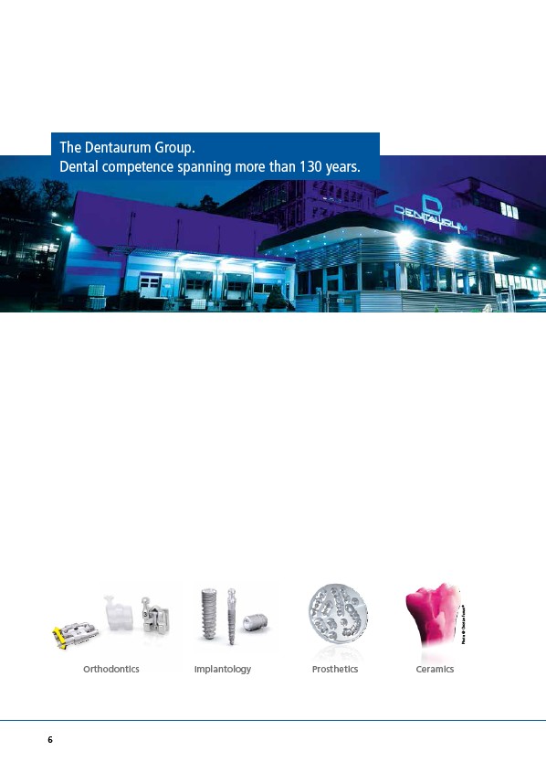 6 Photo: © Christian Ferrari ® The Dentaurum Group. Dental competence spanning more than 130 years. Orthodontics Implantology Prosthetics Ceramics