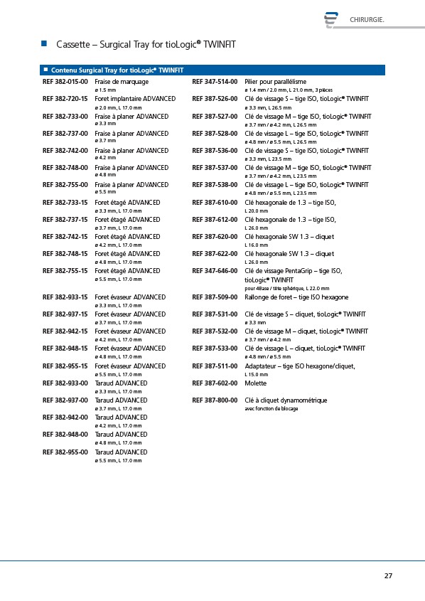 Contenu Surgical Tray for tioLogic® TWINFIT