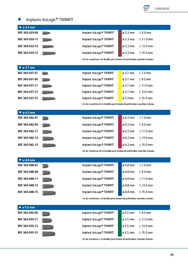 REF 343-037-09 Implant tioLogic® TWINFIT ø 3.7 mm L 9.0 mm