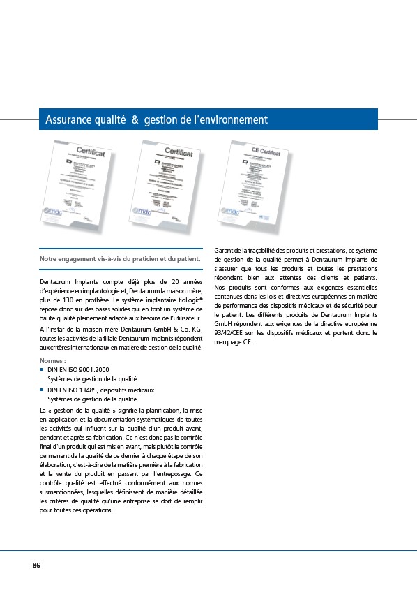 de gestion de la qualité permet à Dentaurum Implants de
