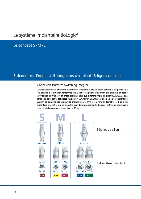 3.3 mm de diamètre, les M pour les implants de 3.7 mm et 4.2 mm de diamètre, les L pour les