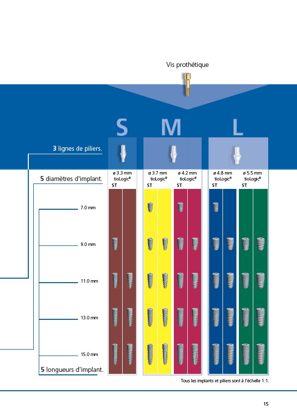 Tous les implants et piliers sont à l'échelle 1:1.