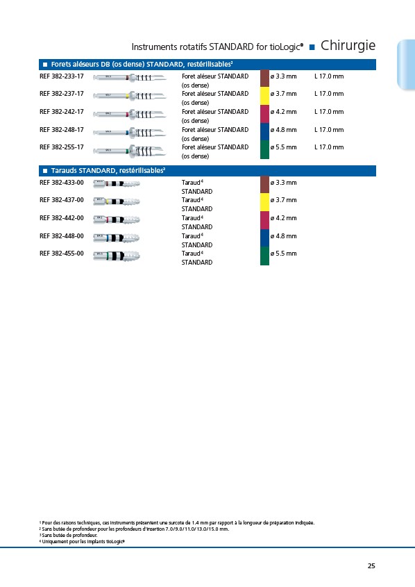1 Pour des raisons techniques, ces instruments présentent une surcote de 1.4 mm par rapport à la longueur de préparation indiquée.