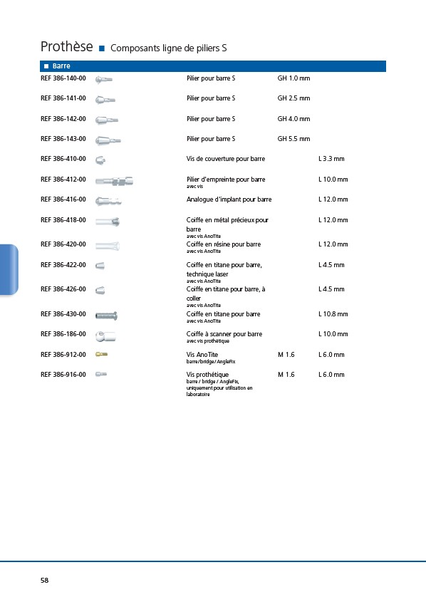 REF 386-140-00 Pilier pour barre S GH 1.0 mm