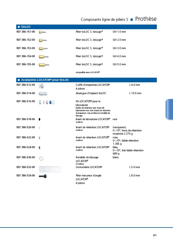 REF 386-151-00 Pilier tioLOC S, tioLogic® GH 1.0 mm