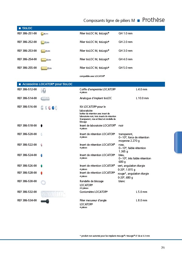 * produit non autorisé pour les implants tioLogic® / tioLogic® ST de ø 3.3 mm
