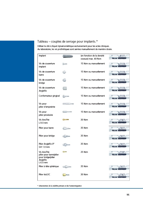 Au laboratoire, les vis prothétiques sont serrées manuellement de manière dosée.