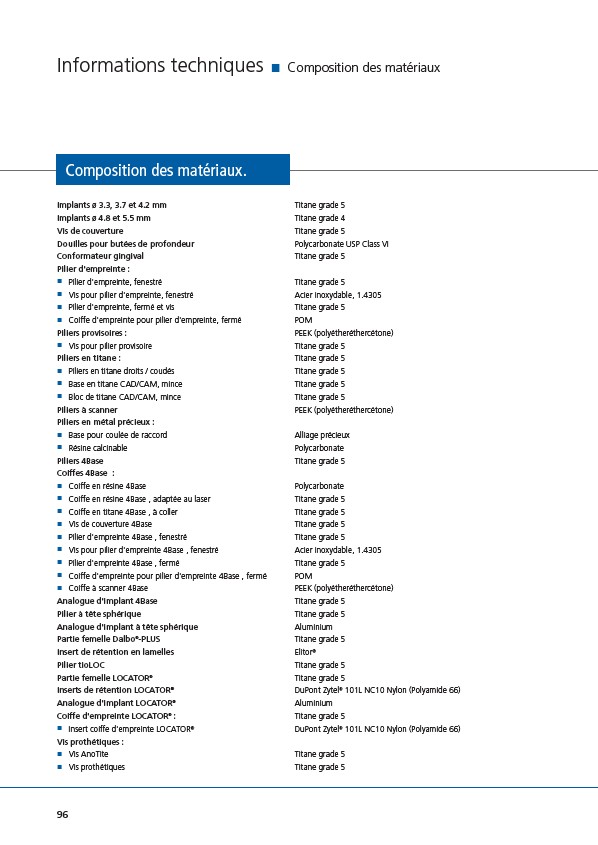 Implants ø 4.8 et 5.5 mm Titane grade 4